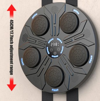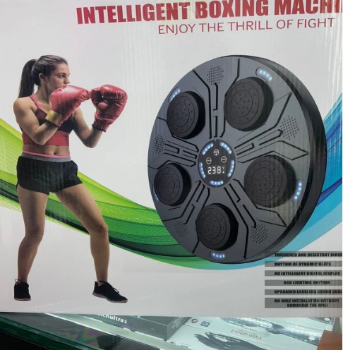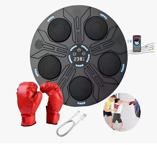 CARACTERÍSTICAS 1. Conectividad Bluetooth sin esfuerzo: Transmita sus canciones favoritas sin esfuerzo con la tecnología Bluetooth inteligente que se conecta rápidamente a su teléfono inteligente. Esta característica de este entrenador de boxeo le permite configurar su propia banda sonora, mejorando su entrenamiento con la música que ama para una sesión de boxeo más personalizada. 2. Entrenamiento de respuesta inteligente: Equipado Con sensores inteligentes, nuestro objetivo electrónico de pared Proporciona comentarios auditivos y cuenta con 9 configuraciones de velocidad ajustables y 9 modos variados, incluido un contador de golpes incorporado. Los puntos de destino parpadeantes aleatorios desafían tus reflejos, haciendo que el entrenamiento no solo sea efectivo sino también divertido. 3.Salud y diversión holística: Gira al ritmo de la música y mejora tus reflejos, agudeza mental y estado físico general con nuestro objetivo de pared de práctica de boxeo. No solo es una excelente manera de ventilar y aliviar el estrés, sino que también ofrece una actividad divertida para los miembros de la familia, fomentando la interacción y el juego que fortalecen los lazos. 4.Incluye un par de guantes de box Material principal: cuero + PP + ABS. Peso bruto: 2500g. Potencia: 5W Tamaño: 40cm x 40cm x 8.5cm Aprox. Incluye: máquina de Boxeo (adhesivo adjunto), cable tipo C, 1 par de guantes genericos