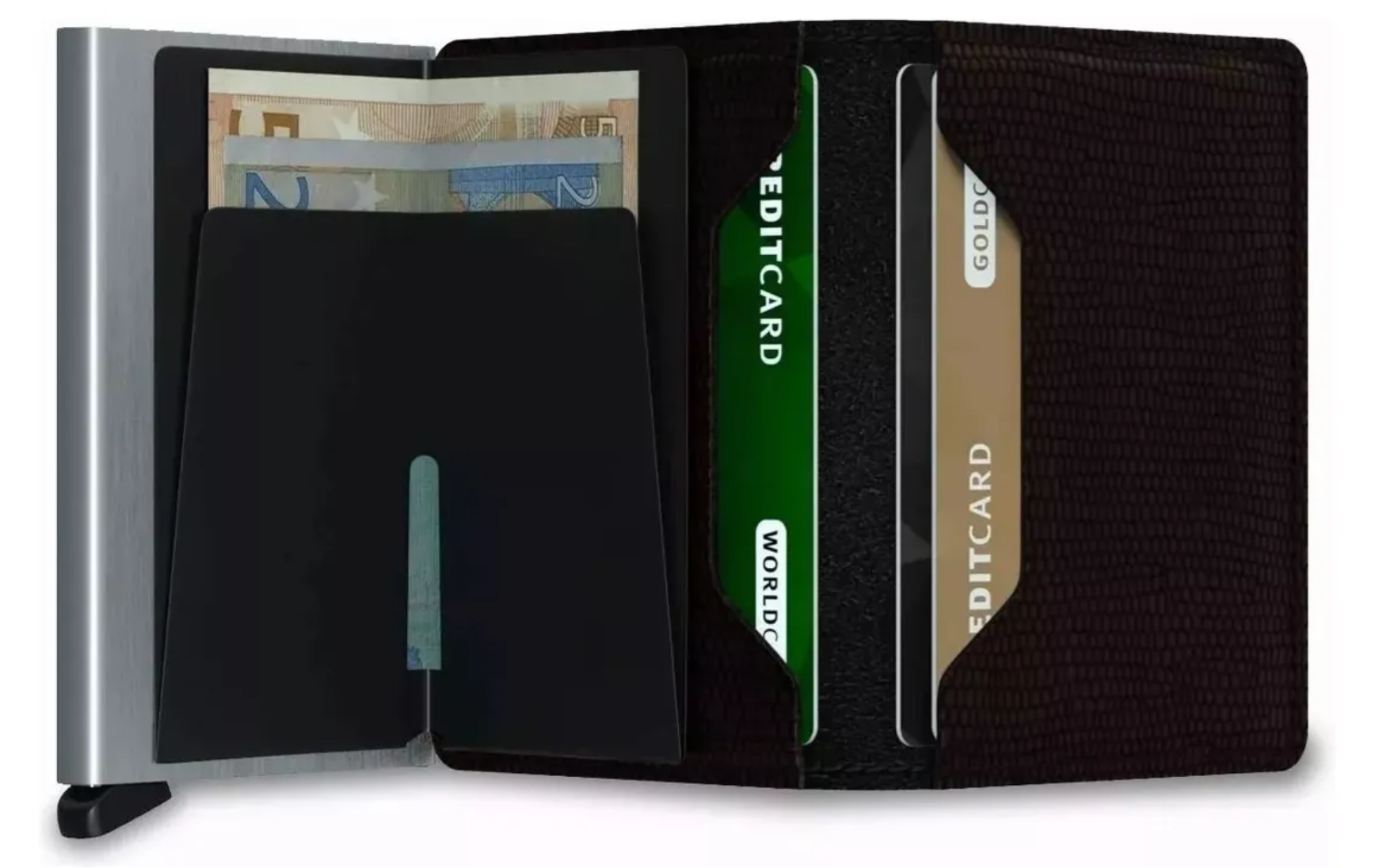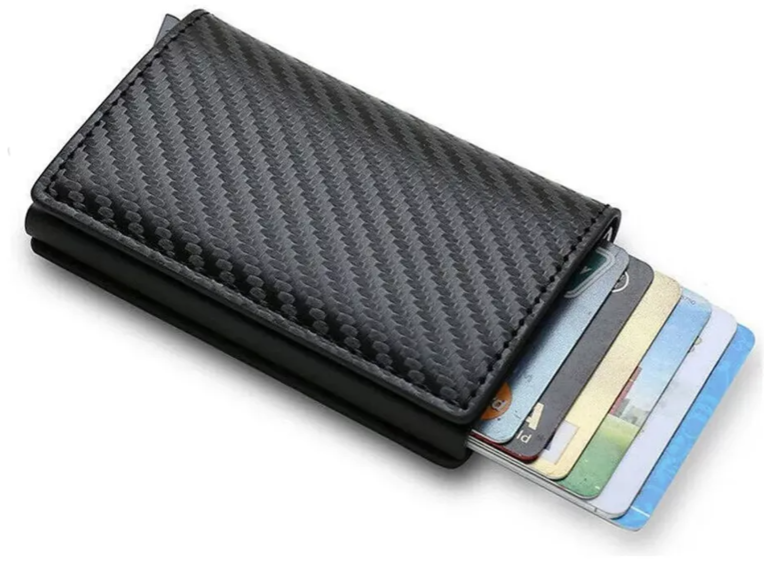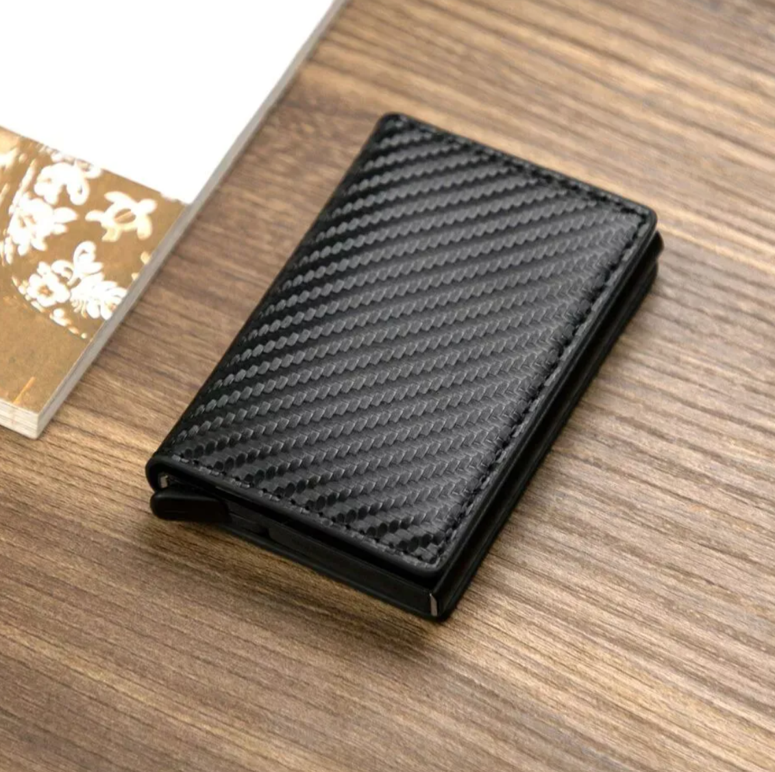 DISEÑO DELGADO CON ESTILO: la billetera del tamaño de la palma de la mano cabe fácilmente y de forma segura en su bolsillo y mientras viaja, perfecta para el uso diario Rápido: presione el botón a continuación para eliminar las tarjetas de una manera limpia y elegante, lo que le brinda acceso con una sola mano a cualquier tarjeta.