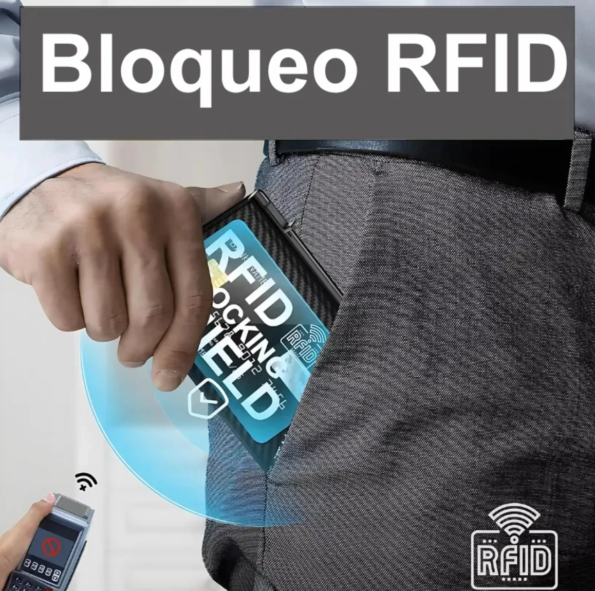 Bloqueo RFID y NFC: la caja de transacciones de aluminio de la billetera protege sus tarjetas privadas y de crédito, tarjetas de información, tarjetas de identificación, pasaportes y permisos para que no sean escaneados por los dispositivos de escaneo de los ladrones para mantener sus pertenencias seguras.