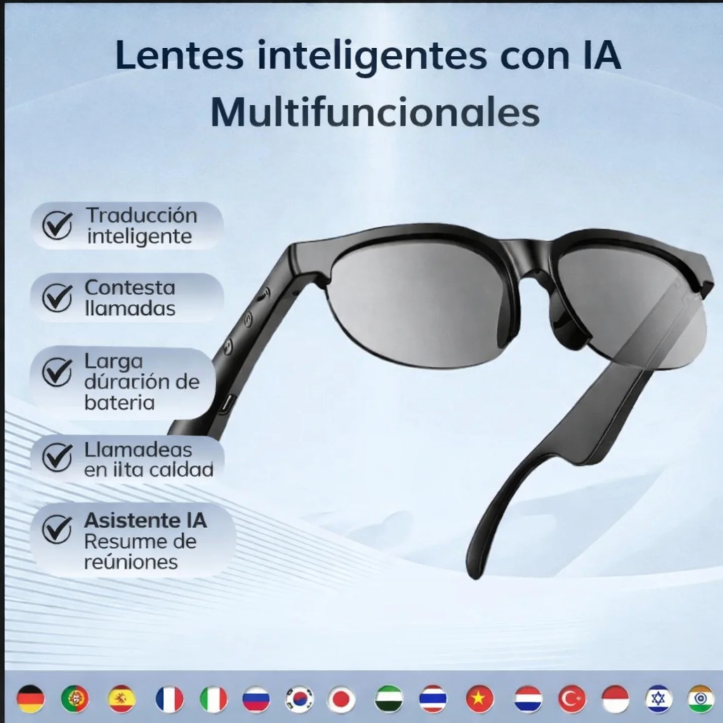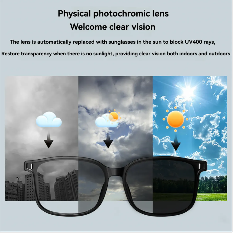 Diseñadas para el estilo de vida activo, ofrecen sonido envolvente con altavoces AAC, micrófono HD para llamadas claras, y lentes que se oscurecen automáticamente al sol (IPX4 resistente al agua).
