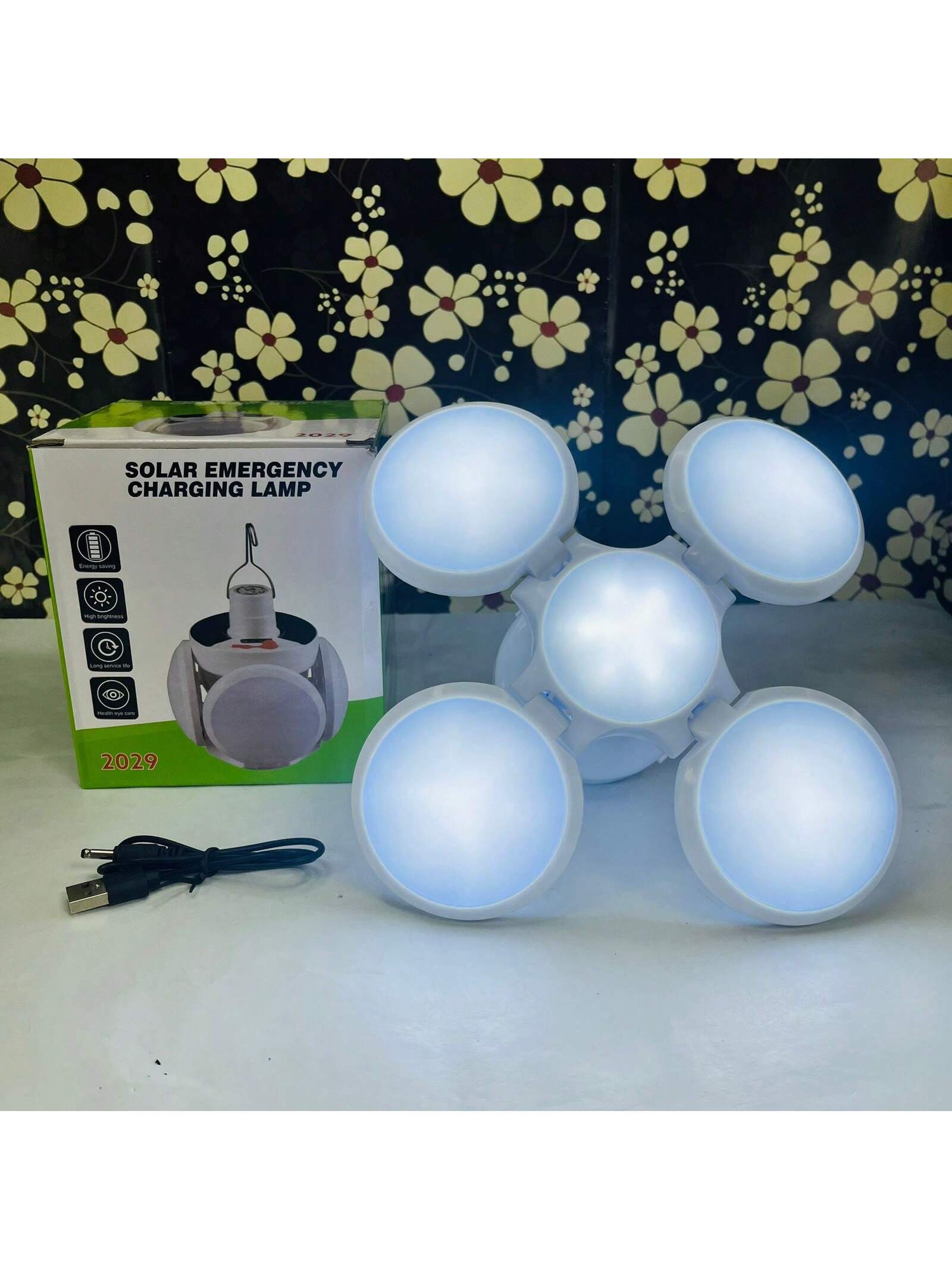 Lampara de Emergencia Tipo Foco Recargable con paneles Solares con gancho Para Colgar
